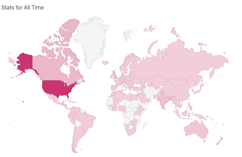 I was reviewing my visitor stats, and I am happy to see extensive global coverage. North America—particularly the United States is my largest audience—, but South America, Australia, and Eurasia have representation. Africa is a bit spotty, and let’s not discuss Antarctica. I’m not sure about Greenland, but they don’t know about me either. Iceland represents, but not Svalbard, which admittedly, I’ve not heard of before. No offence.
