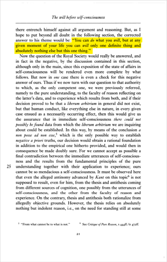 aber er kann nicht wollen, was er will.”