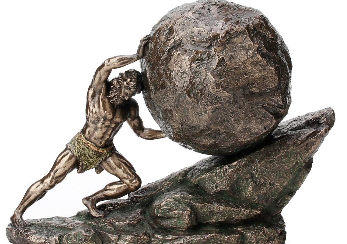 The story of Sisyphus finds the namesake character, fated by the gods to each day push a stone up a hill only for it to roll back down for him to push it back up every day ad infinitum. Camus leaves us with the prompt, ‘One must imagine Sisyphus happy’. But must we.?