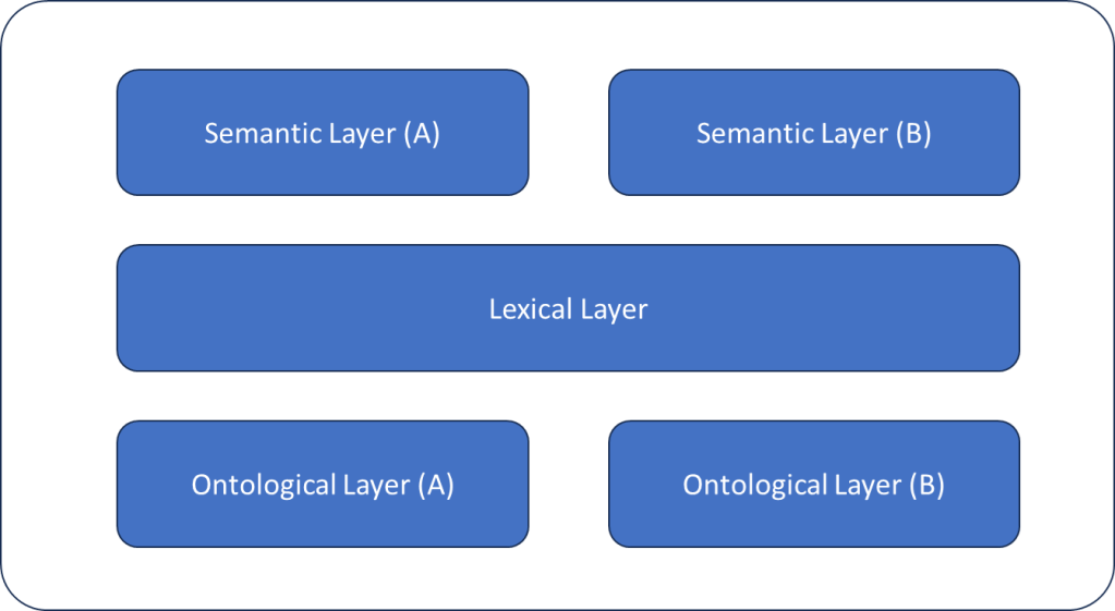 Image: This figure illustrates a simplified layered model of moral and political disagreement. Agents share a common lexical layer, enabling communication and the appearance of mutual understanding. Beneath this surface, however, ontological orientations diverge, structuring salience, legitimacy, and relevance prior to articulation. Semantic interpretation emerges downstream of these ontological commitments, producing divergent meanings despite shared vocabulary. The model highlights why disputes persist even under conditions of factual agreement and linguistic overlap: the instability lies not in words themselves, but in the ontological substrates from which semantic projections are drawn.
