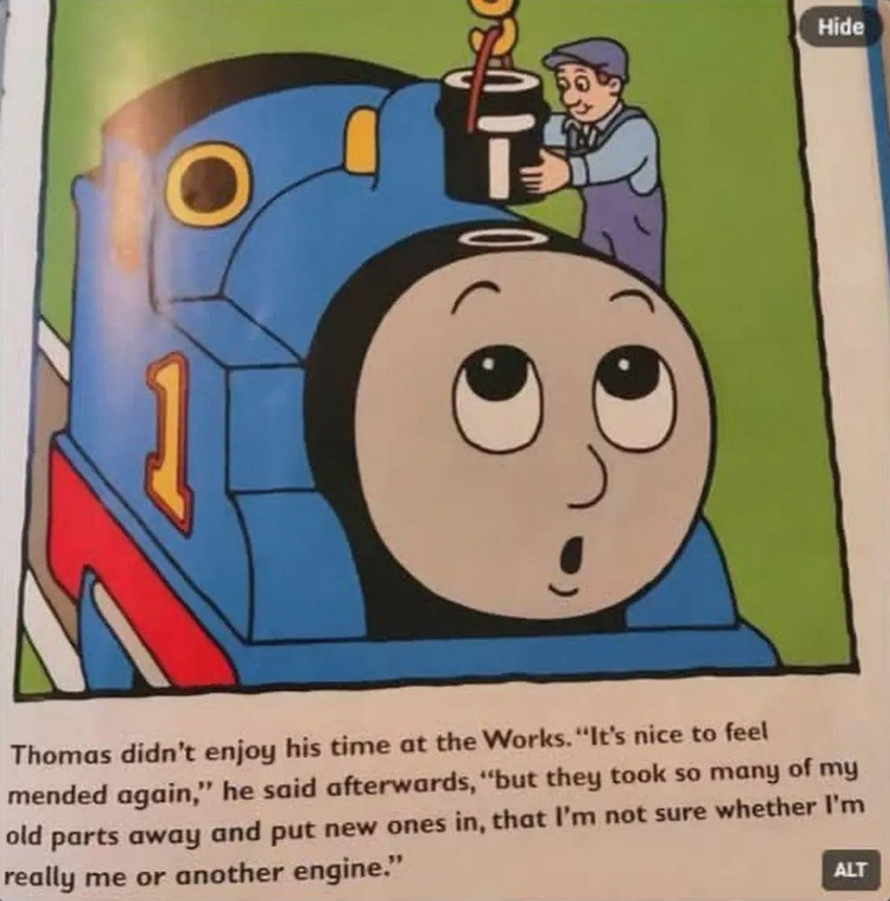 My son sent me this. He knows me. I had just spoken to my ex- about the Ship of Theseus.