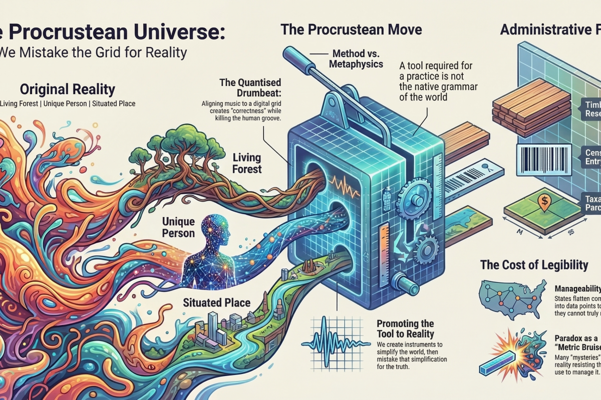 None of this requires anti-scientific melodrama. Science is powerful. Measurement is indispensable. Standardisation is often the price of cumulative knowledge. The problem is not the existence of the grid. The problem is the promotion of the grid into metaphysics. A tool required for a practice is not therefore the native structure of the world. That should be obvious. It rarely is.