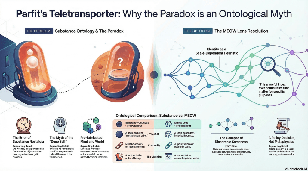The teletransporter does not expose a contradiction in selfhood. It exposes the poverty of the ontology brought to the problem.