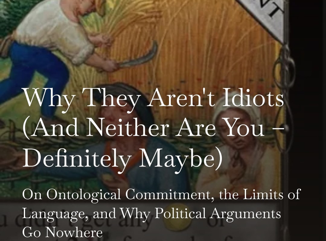 What’s left is the quiet conviction that the other person is either ignorant, stupid, or arguing in bad faith. Perhaps all three. And you can be certain they’re extending you precisely the same courtesy.