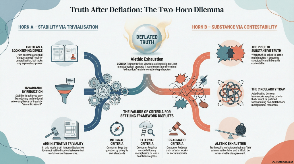 Once deflationary constraints are accepted, attempts to “save” Truth fall into a simple two-horn dilemma.