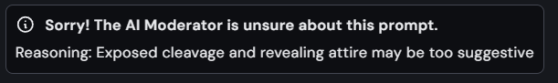 In a bout of hypocrisy, Midjourney refused to /DESCRIBE the image it just generated.