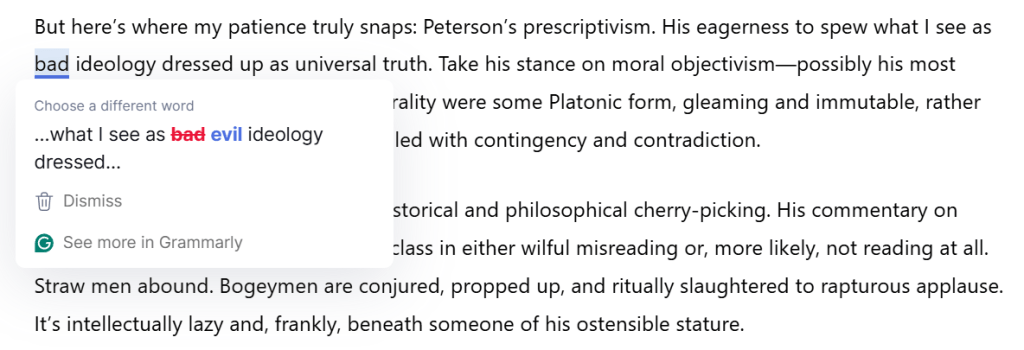 Autocorrect, in its infinite wisdom, suggested I swap bad for evil. Ah yes, because evil is precisely what I want—a term dripped in moral absolutism and ideological baggage.