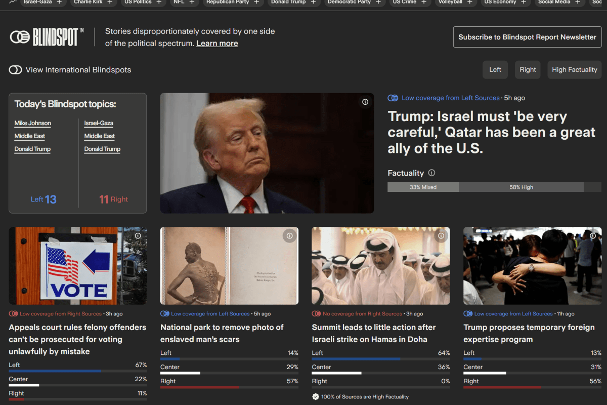 I like to stay updated on the news of the day, so I just registered for a Ground News account. Ground News is a news aggregator. They gather news and categorise it by political leaning and the publication’s record on factuality. Their claim is to reveal blind spots so help people not get caught in perspective bubbles. It also shows when a story is picked up predominantly by one side or another. I’ve seen ads for this on many channels and have for a while, so it’s likely that you have, too. This is not an ad.
